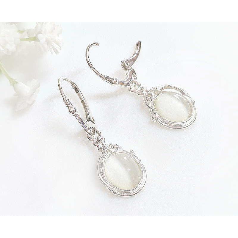 Ohrhänger oval weiß Silber 925