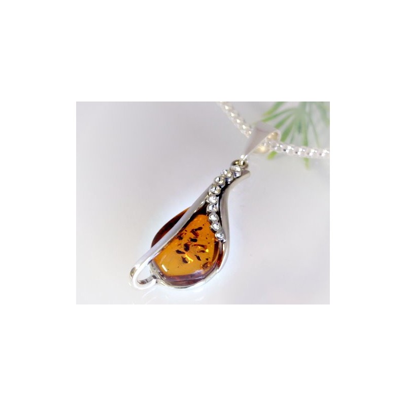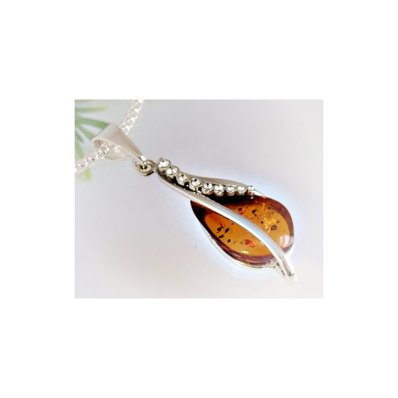 Bernsteinanhänger & Zirkonia mit Silber-925
