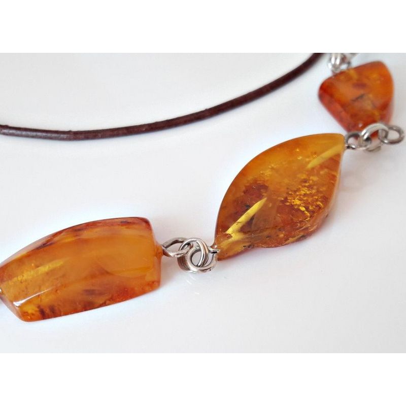 Bernstein mit Lederband