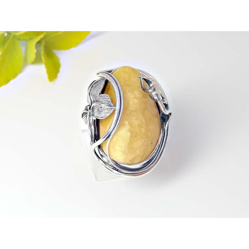 Silberring mit großem Bernstein