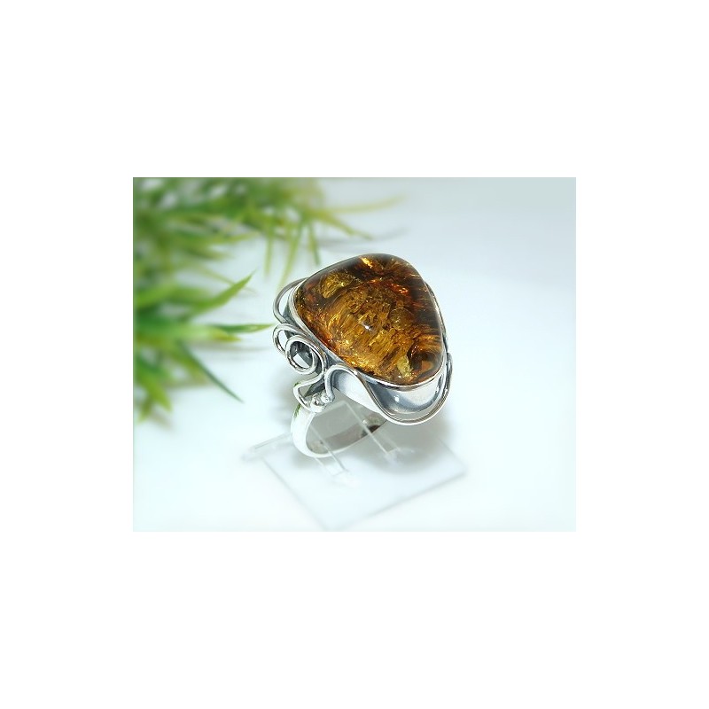 Silberring mit großem Bernstein