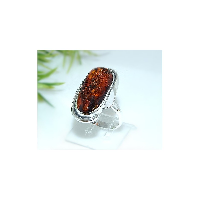 Silberring mit großem Bernstein