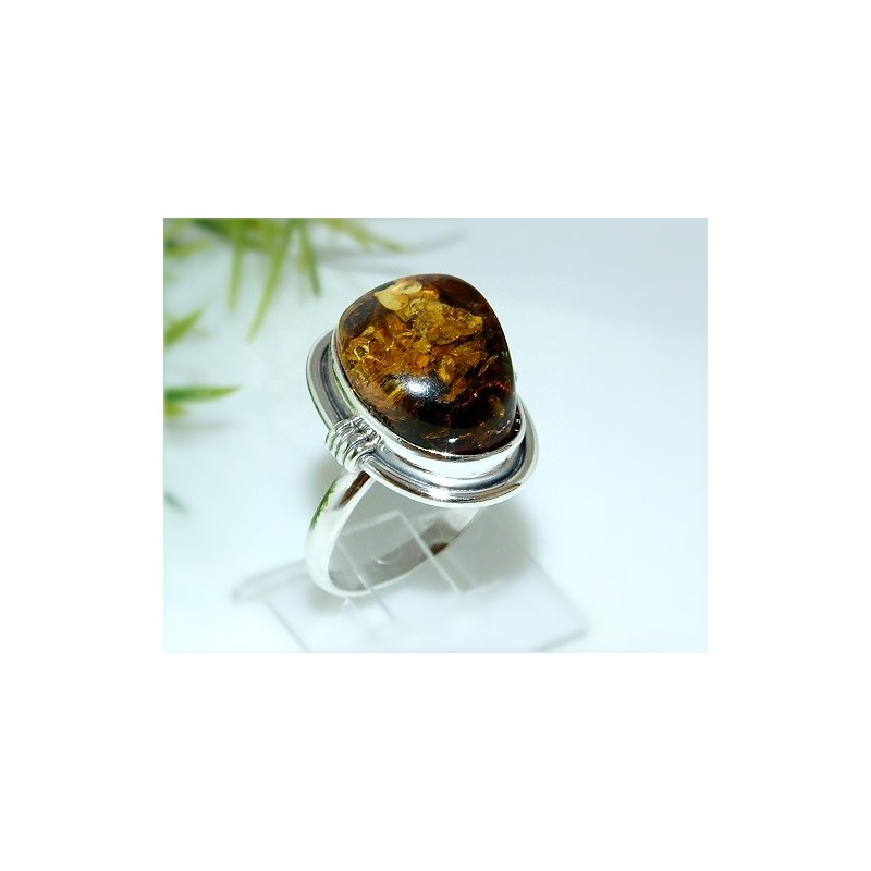Silberring mit großem Bernstein