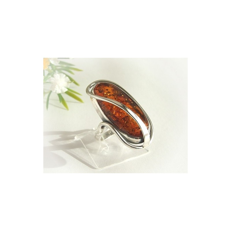 Silberring mit großem Bernstein