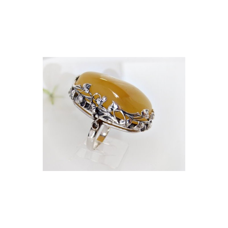 Silberring mit großem Bernstein