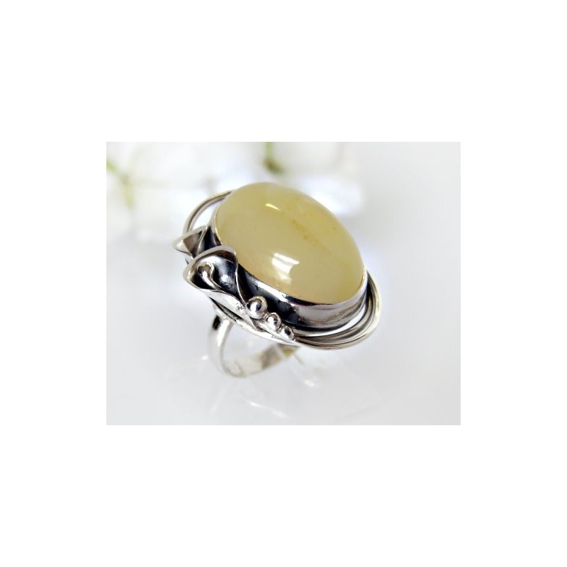 Silberring mit großem Bernstein