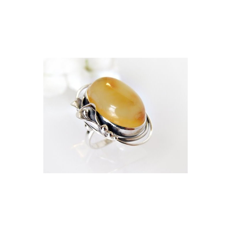 Silberring mit großem Bernstein