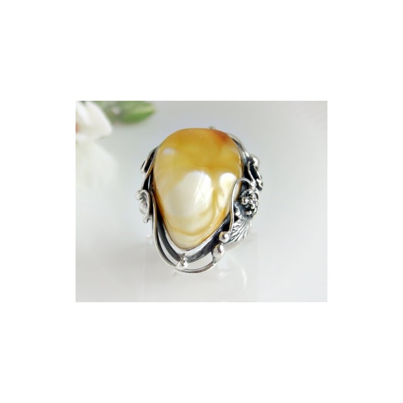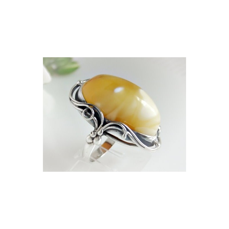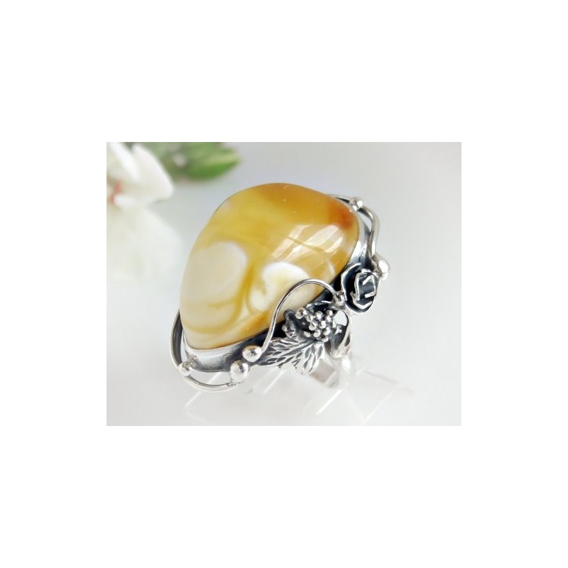 Silberring mit großem Bernstein
